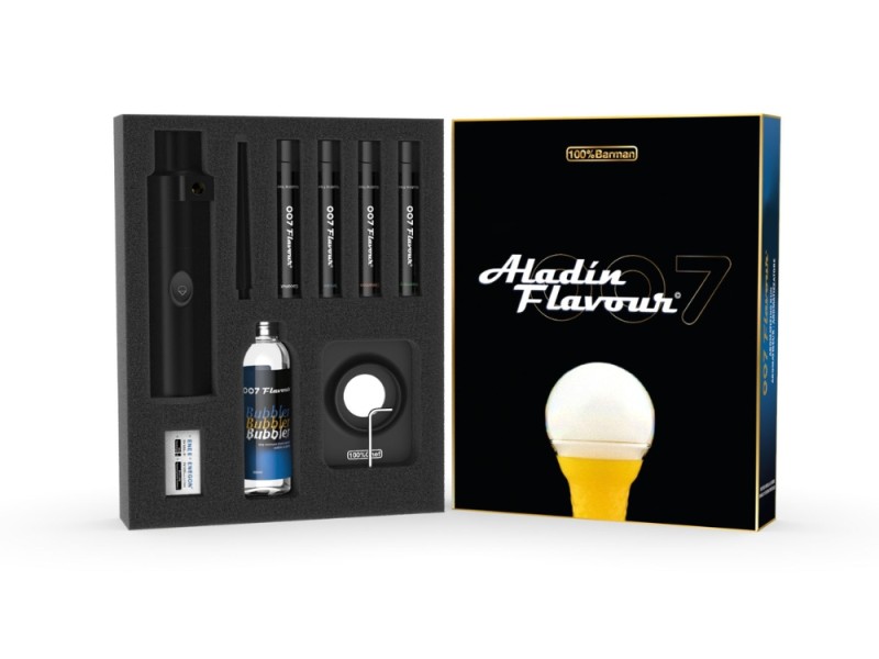 La nueva 007 Flavour Aladin, es la pistola aromatizadora que genera vapor aromático al instante para rellenar envases (campanas) o crear atractivas pompas para servir en copas y platos y trasladar el efecto ¡¡wow!! al cliente.