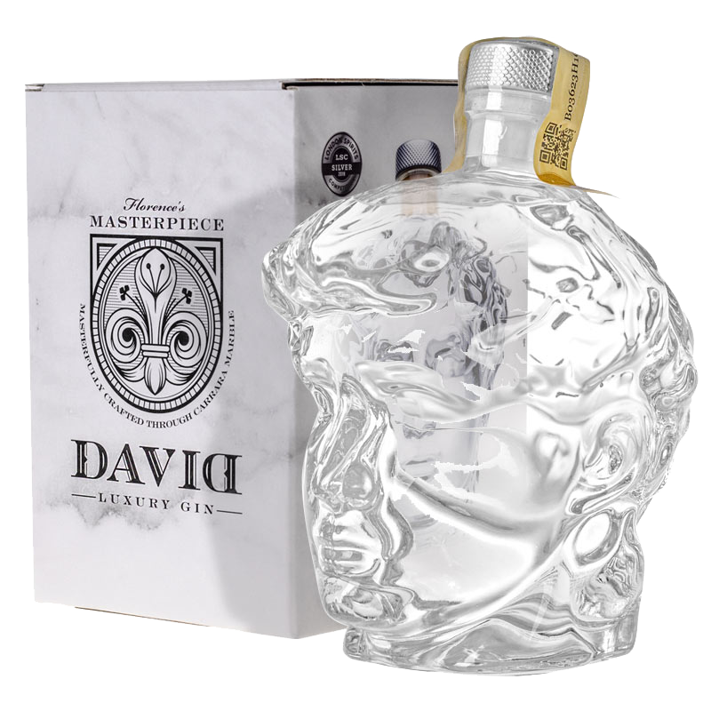 Gin David Premium Luxury es una ginebra premium italiana presentada en una cabeza de cristal en homenaje a uno de los artistas más reconocidos del Renacimiento, Michalangelo Buonarroti, y a una de sus obras más famosas, el David. Una ginebra única elaborada con agua de la Toscana, alcohol de vino y 11 botánicos, donde destaca la raíz de iris como elemento floral principal. A la vista presenta un elegante color transparente con reflejos del cristal. En nariz encontramos una fragancia cítrica con notas florales y de vainilla. En boca es fino y equilibrado, con persistentes notas de frutas y cítricos.