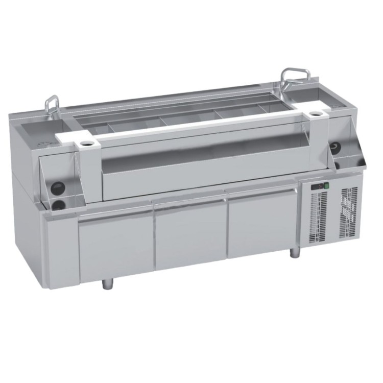 • 3 cajoneras refrigeradas de acero inoxidable, desmontables sobre