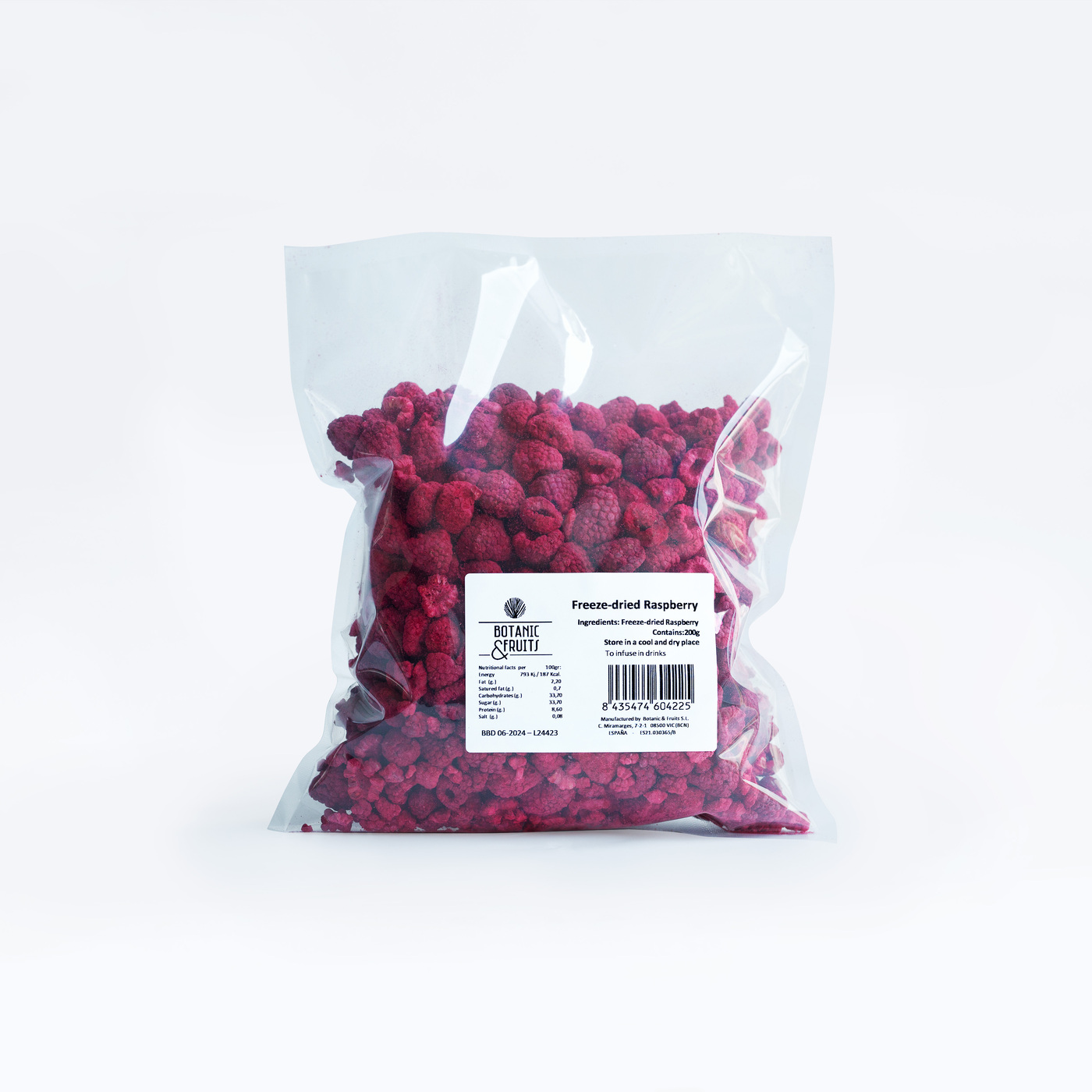 Con una textura crujiente y un sabor concentrado, las frambuesas liofilizadas son ideales para dar un toque gourmet y natural a postres, tartas, yogures, smoothies, bowls, cereales, chocolates artesanales o incluso como un snack saludable y diferente. También se disuelven fácilmente en líquidos, por lo que son perfectas para infusiones, cócteles o preparados fríos y calientes, aportando color, aroma y sabor de forma instantánea. És ideal para ginebras dulces: