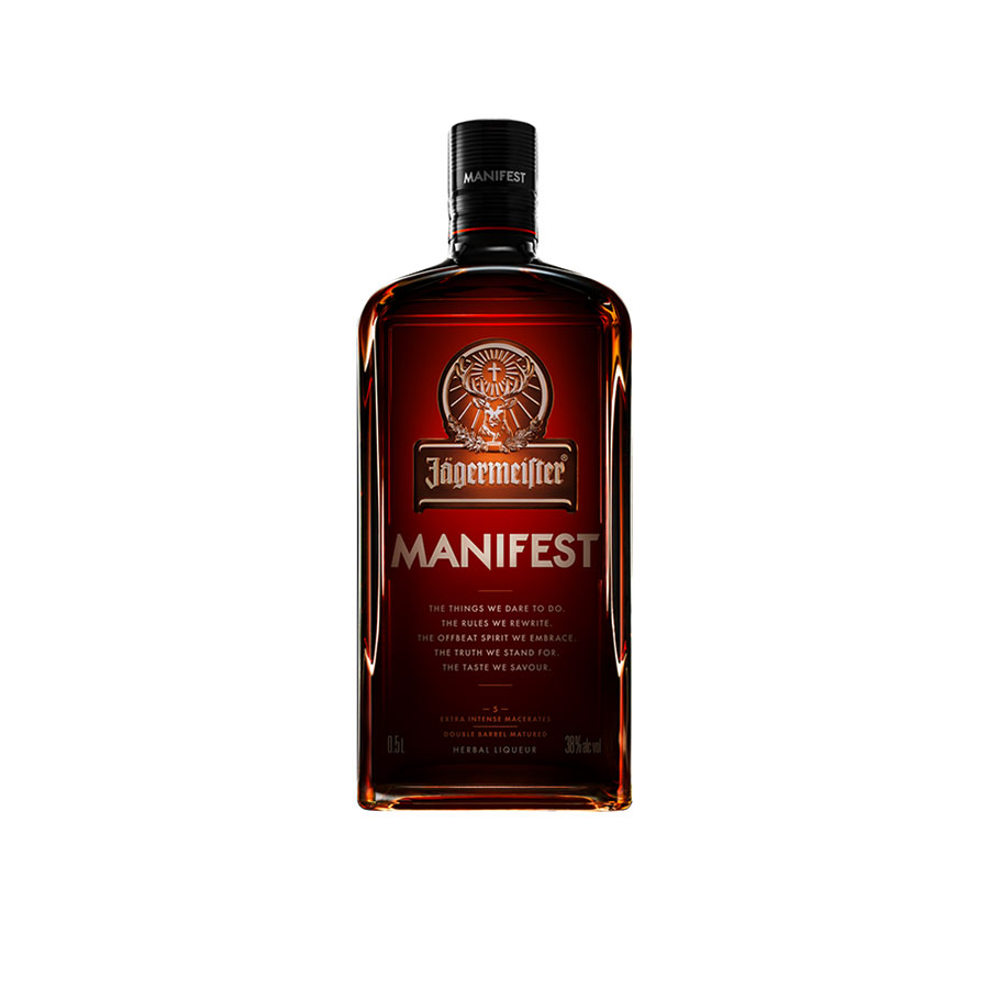 Es una mezcla de sabores sólida y con mucho cuerpo, notas dulzonas de anís y fruta deshidratada que dejan paso a especias sutiles y amargos aromáticos, que finalizan con un maridaje entre la vainilla y el roble de barril. La nueva botella de vidrio transparente luce el emblema de Jägermeister, handmade, que enfatiza el color de cobre oscuro de este licor súper-premium. La forma óptima de tomar Jägermeister Manifest es ligeramente frío.