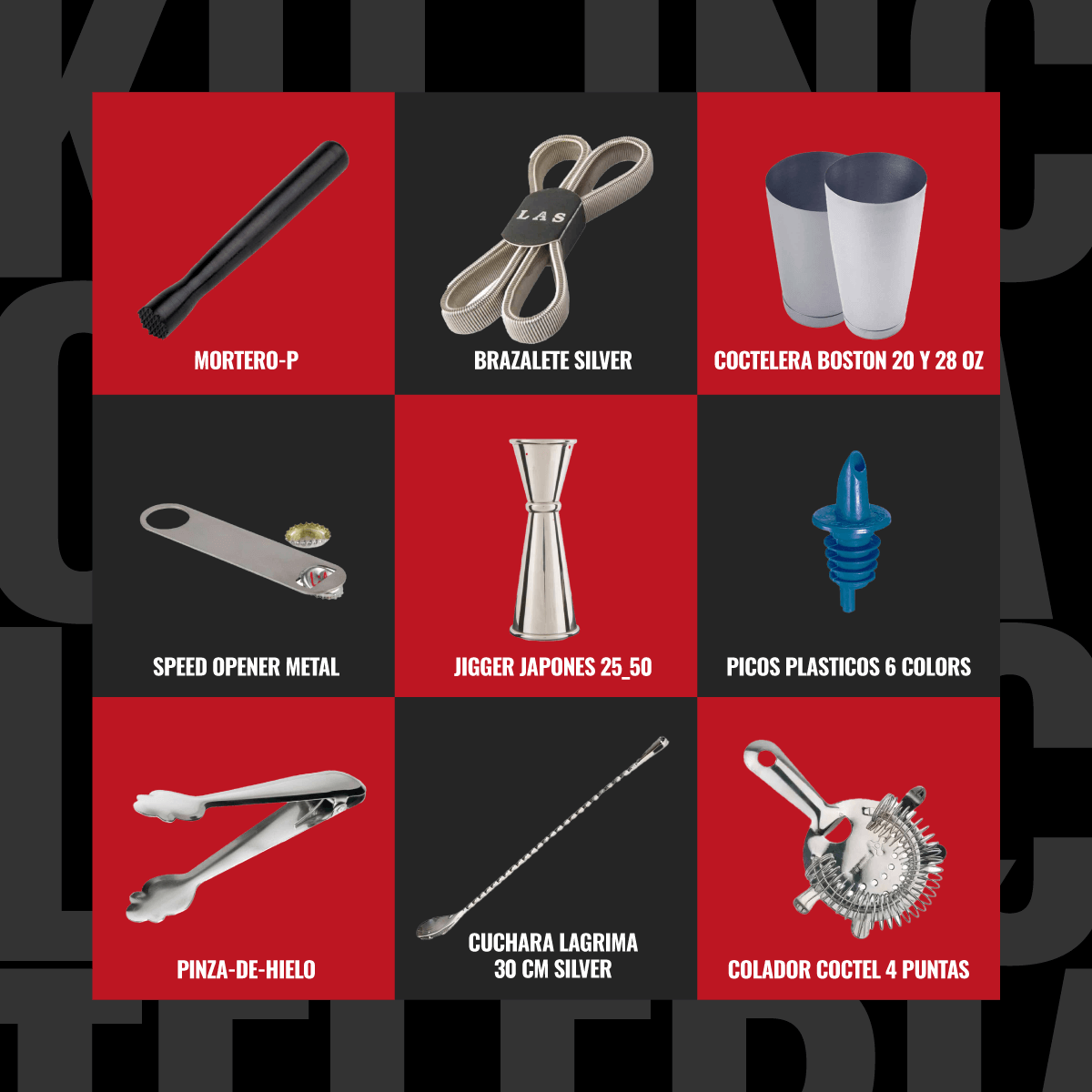 Este completo set incluye todo lo necesario para comenzar a crear tus propios cócteles, con utensilios de alta calidad.