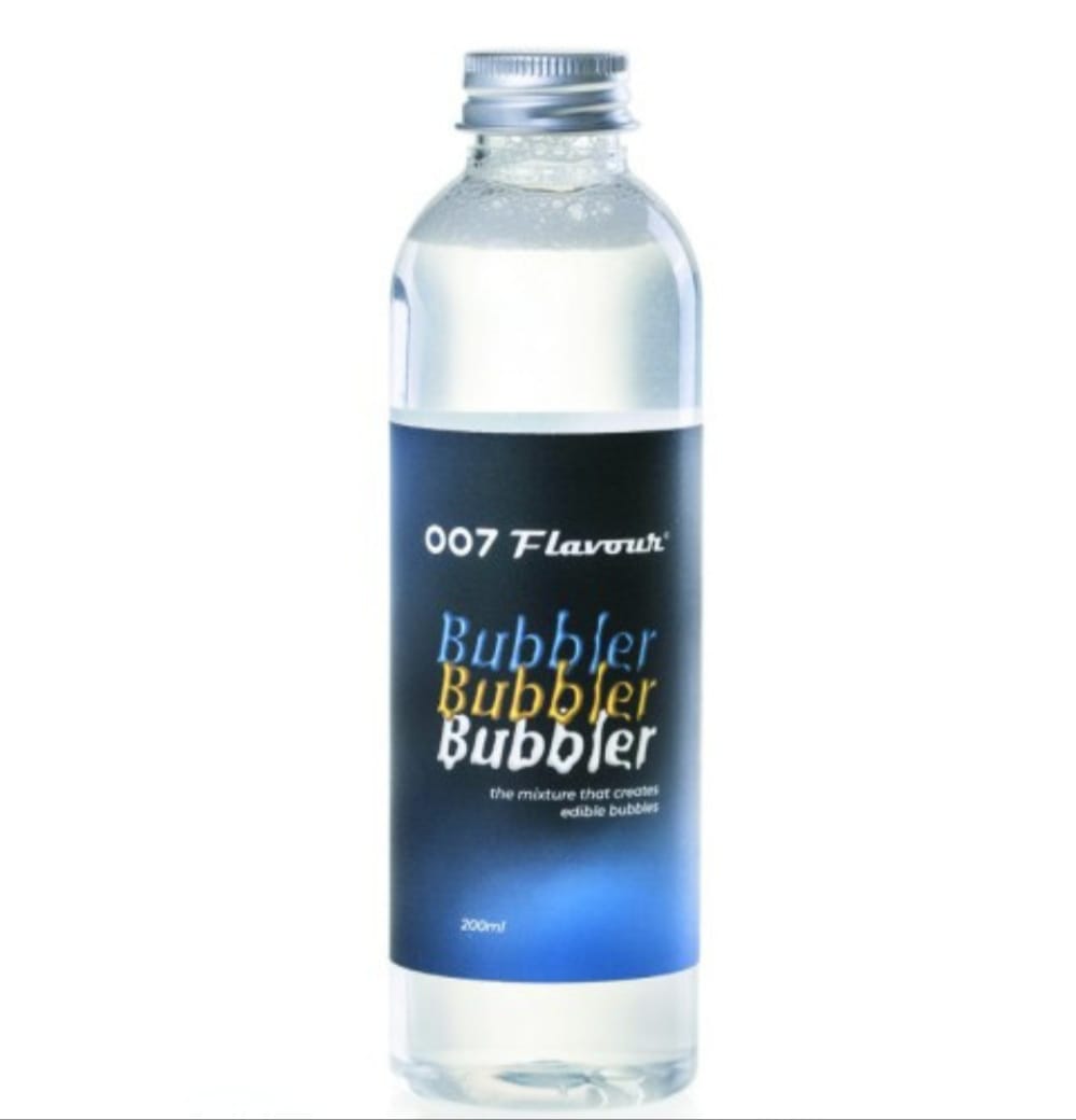 Solución alimentaria, especialmente formulada para el uso en la hostelería extremadamente elástica que permite la elaboración de pompas o burbujas gigantes para ser rellenadas de vapor aromático o humo y decorar cócteles, bebidas, o platos para dar a su cliente una sensacional experiencia de servicio.