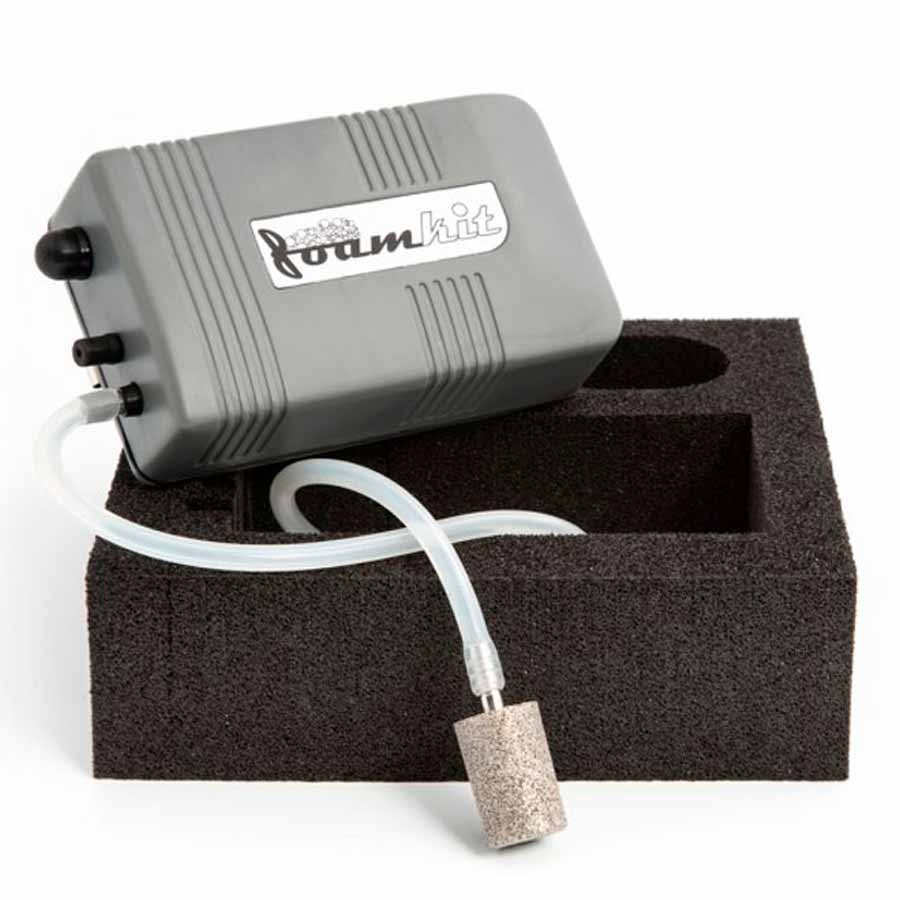 Finalmente el aireador perfecto para crear en segundos de forma continuada o de forma puntual “aires” homogéneos, estables y en pequeña o gran cantidad sin utilizar el túrmix. Para trabajar simplemente diluir una proporción medida de lecitina de soja o agentes espumantes con un producto en estado líquido e introducir en un contenedor más alto que ancho, Sumergir en la solución la boquilla plana del Foam-KIT y apriete el botón y en pocos segundos podrá recoger tanta espuma como necesite. Conecte o desconecte pulsando un botón y controle su producción de forma perfecta. Trabaje en cualquier sitio sin necesidad de enchufes o cables ya que el compresor trabaja con 2 baterías de 1,5 V LR20 y más de 96 horas de autonomía.