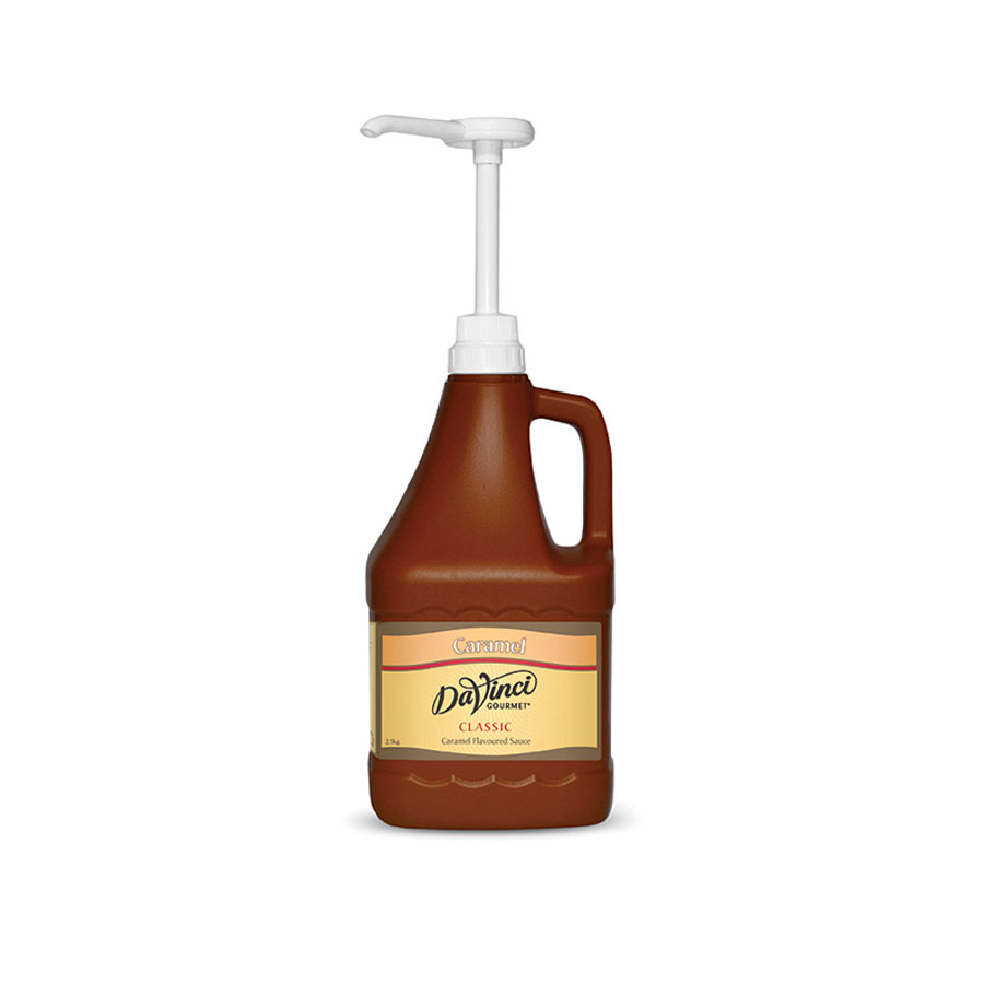 Salsa de caramelo Davinci, no se altera en calient eni en frío. Sabor y aroma en el punto perfecto. Textura excepcional, brillante, densa…Especial para usar como topping en batidos, frappés, creps o helados.