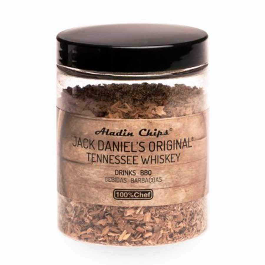 Aladín Chips Jack Daniel’s es la mejor elección para ahumar tanto barbacoas cómo cocktails y bebidas. Se puede todavía utilizar con todo tipo de alimentos, gracias a su baja cantidad de resina y residual.