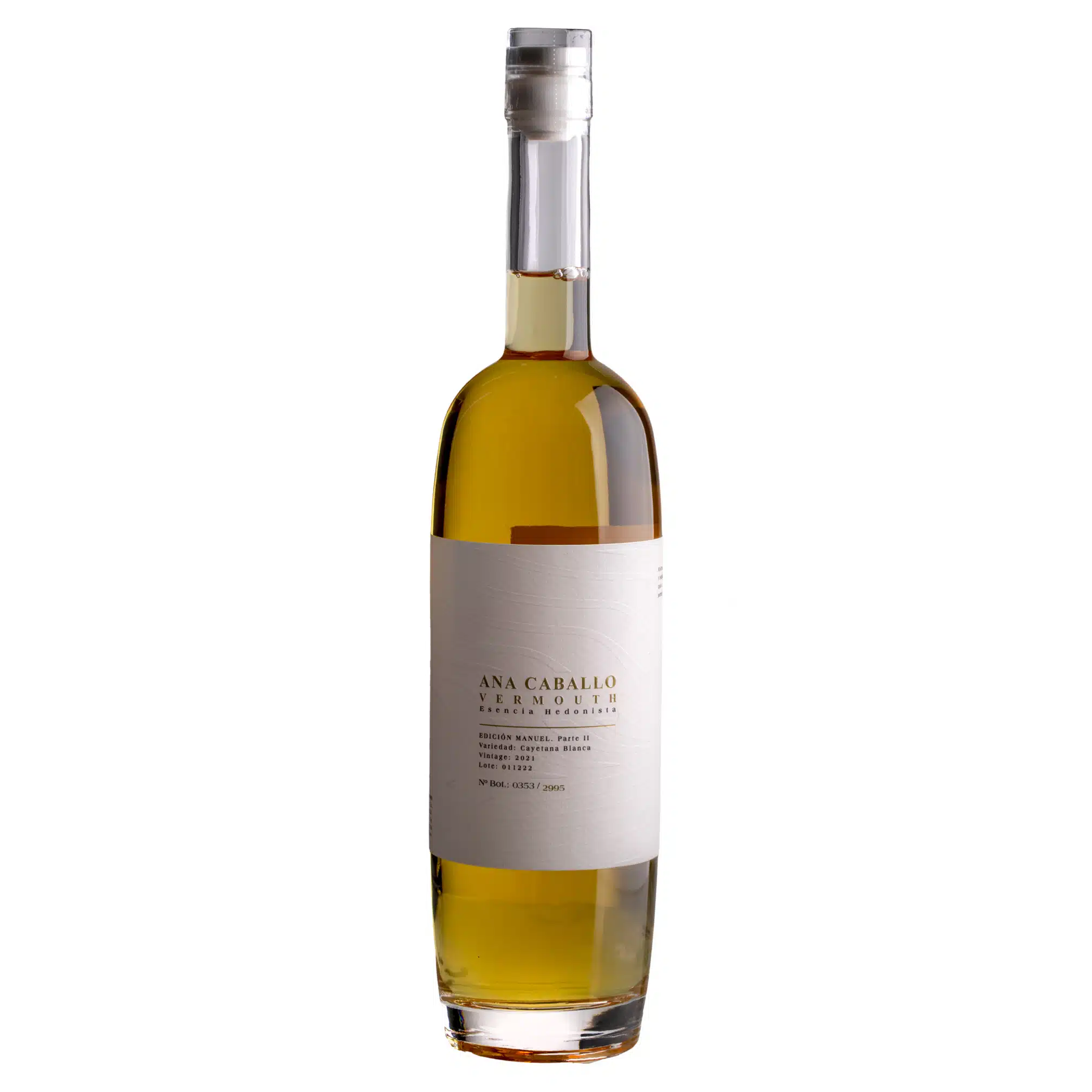 Todo en este vermut, elaborado en Monesterio, Badajoz, resulta elegante y excepcional: la calidad del vino base elaborado a partir de la variedad de uva cayetana blanca, la fusión de una compleja formulación de botánicos de extrema calidad, y la preciosa botella transparente y estilizada que permite ver el color del vermut. Finalizada la maceración de los botánicos durante tres meses, el producto final descansa dos meses más en botella para integrar aromas y sabores. El resultado final es un vermut intenso, y aromático, en el caso del blanco menos amargo y con más notas de especias que el rojo.